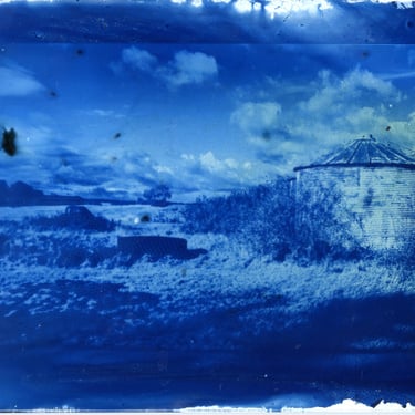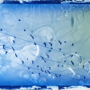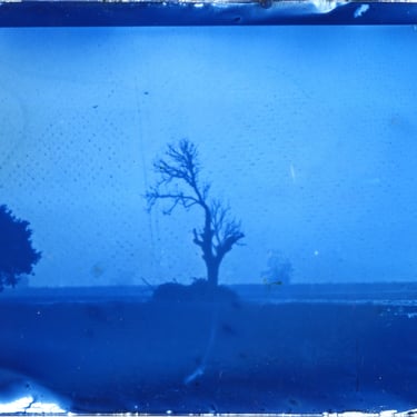 I use a historic 19th-century process called the cyanotype. This technique doesn't use ink; it uses UV light, the sun's own energy,to create the image. By using sunlight to expose the prints, I am allowing the sun to "co-author" the image of the very land it is being harvested to replace. Instead of paper, I print these images directly onto glass panes. This part was full of failures and learning before refining a recipe that I use throughout. The glass mimics the material of the solar panels themselves. By fixing the image of living crops onto cold, industrial glass, the artwork mirrors the "violent translation" happening to the landscape: turning a living ecosystem into a fragile, static commodity. The resulting images are deep blue "blueprints" of the landscape. They capture the "understated character" of the Lincolnshire fields, the hedgerows, the soil, and the traditions thats have lasted generations, before they are hidden beneath glass and steel.